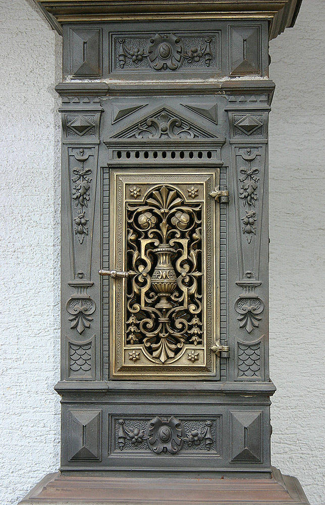 Mit seinen 12 kw könnte dieser Holz-/Kohleofen 256 m³ Raum beheizen und hätte in Funktion eine mittlere Abgastemperatur von ca. 270°C, erforderlicher Kaminzug 12 PA